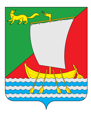 Герб района утвердили в 2011 году. Геральдисты описывают его так: «В скошенном слева зелёно-червлёном поле на серебряно-лазоревой выщербленной и пятикратно чешуйчато пересечённой оконечности размещена золотая ладья с четырьмя видимыми вёслами, рулём, раздвоенным вымпелом на мачте и с серебряным парусом, сопровождённая в верхнем правом углу золотым шагающим обернувшимся соболем».